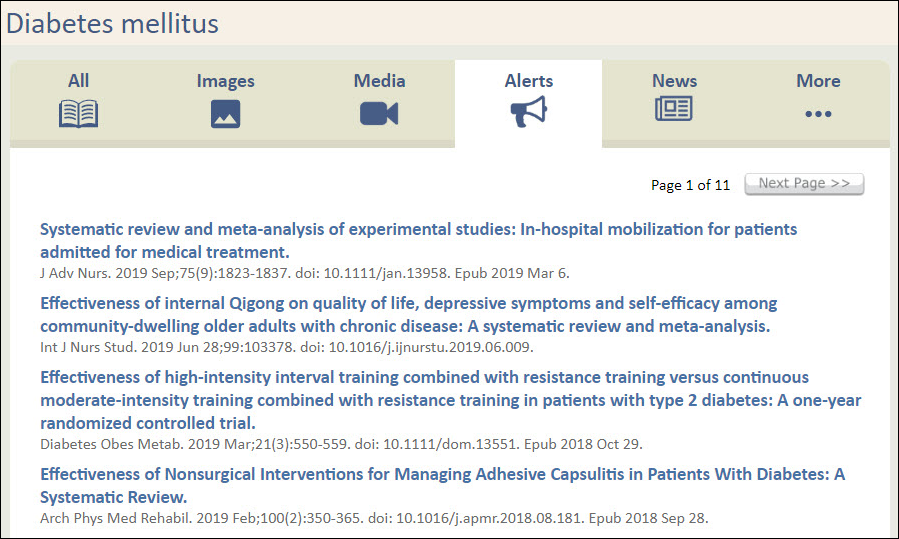 Alerts - Any related STAT!Ref/McMaster Evidence Alerts found are listed and accessible from this tab.