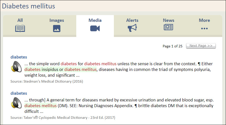 Media - Any Media found is listed here. This could include videos as well as dictionary terms.
